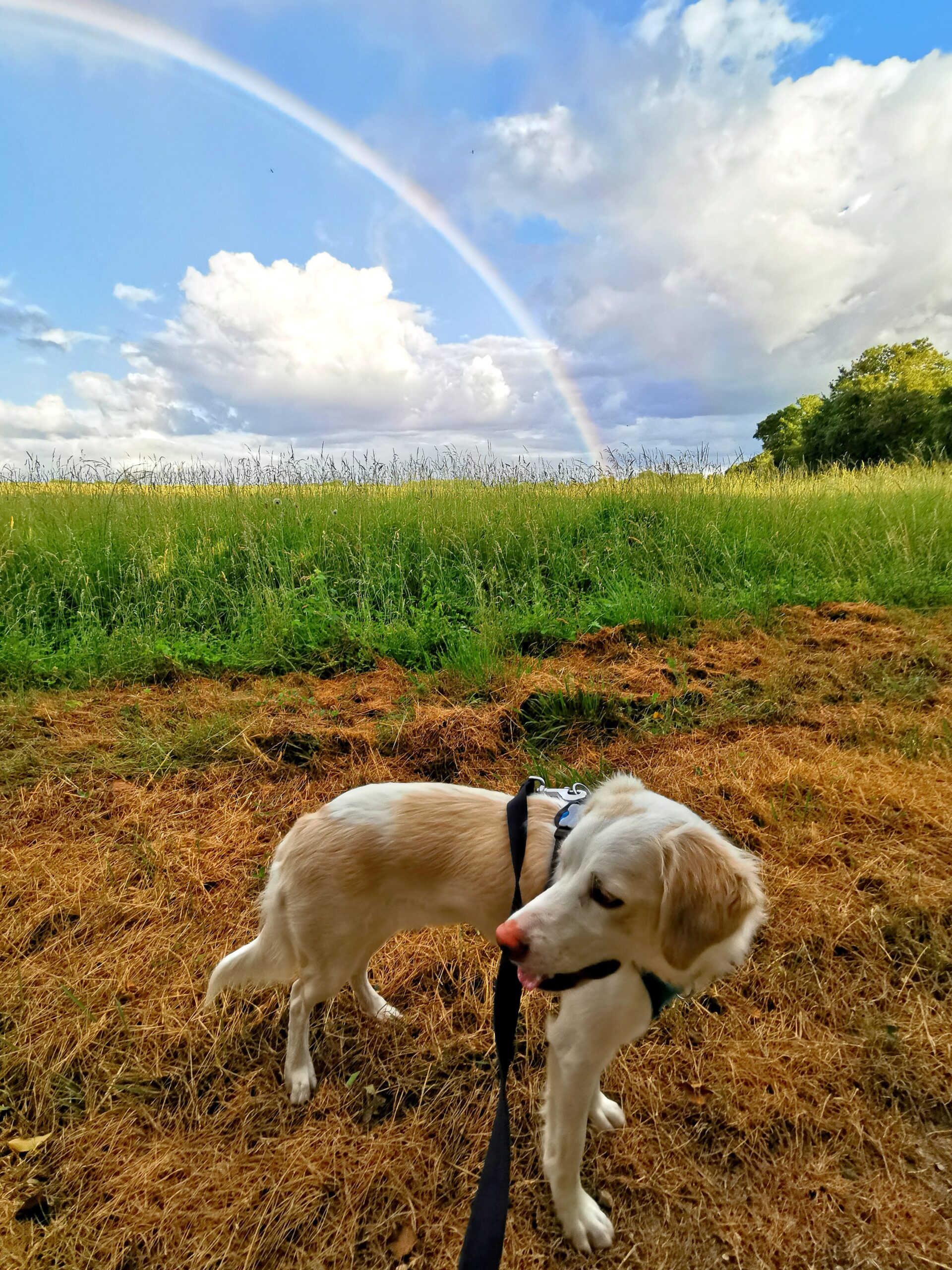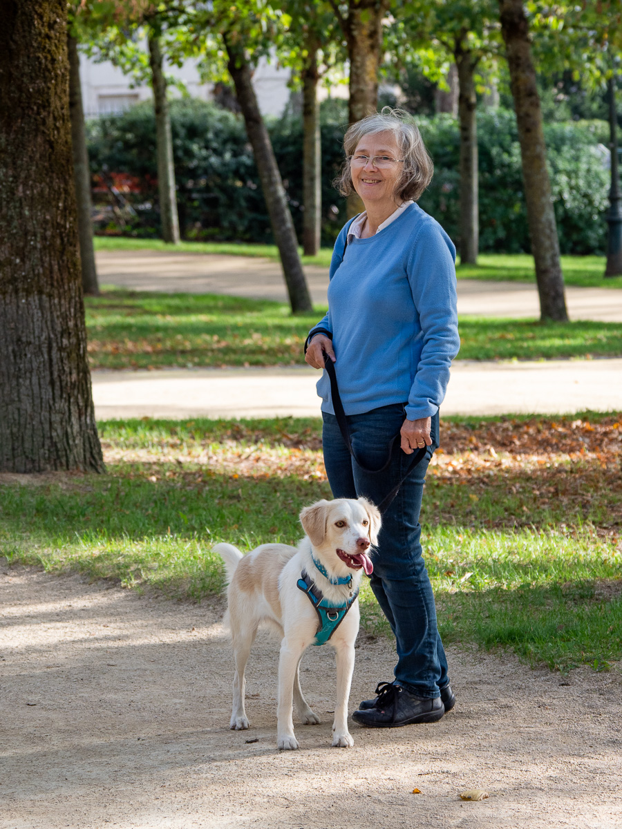 Seven months ago we added to our family here with the arrival of Rhubarbe (Ruby). She is a young, medium-sized, spaniel-like dog from a rescue centre. She had a pretty rubbish puppyhood with a badly broken back leg so her socialisation and training need a bit of work. However, she loves to run and has a lovely boisterous, but gentle, personality.